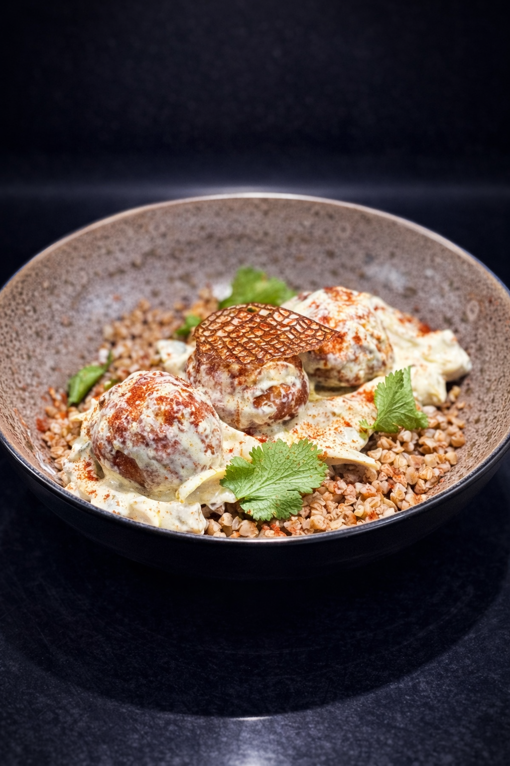 Гречка з мітболами та вершково-грибним соусом
