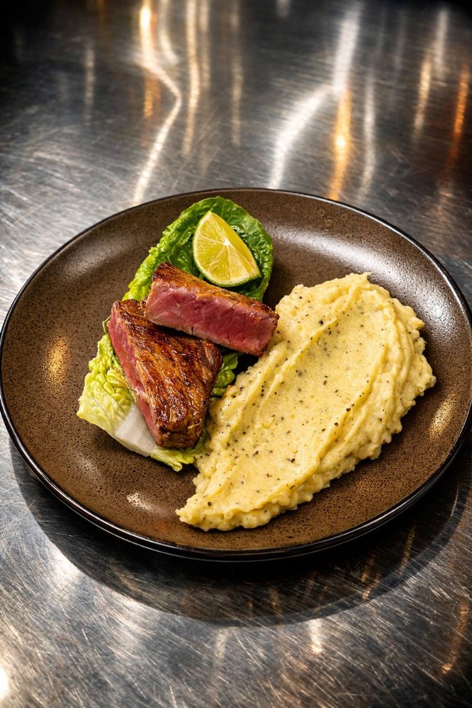 Стейк із тунця з трюфельним пюре