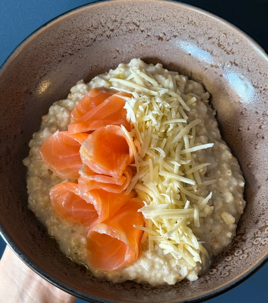 Вівсянка з лососем, пармезаном і трюфельною олією