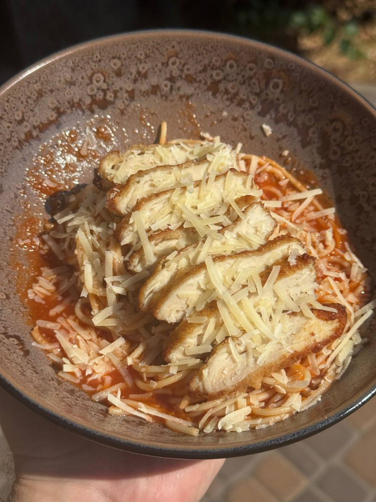 Паста з телятиною су-від та грибами під соусом Чеддер