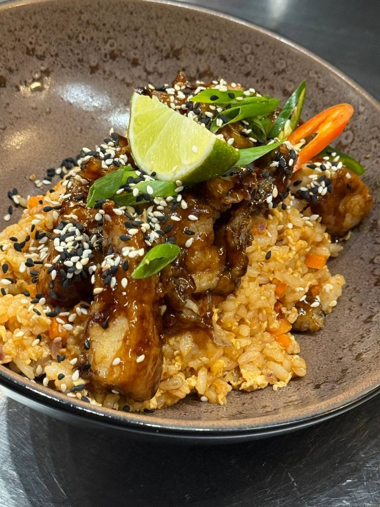 Втомлена в пиві яловичина під соусом Чеддер із фрі